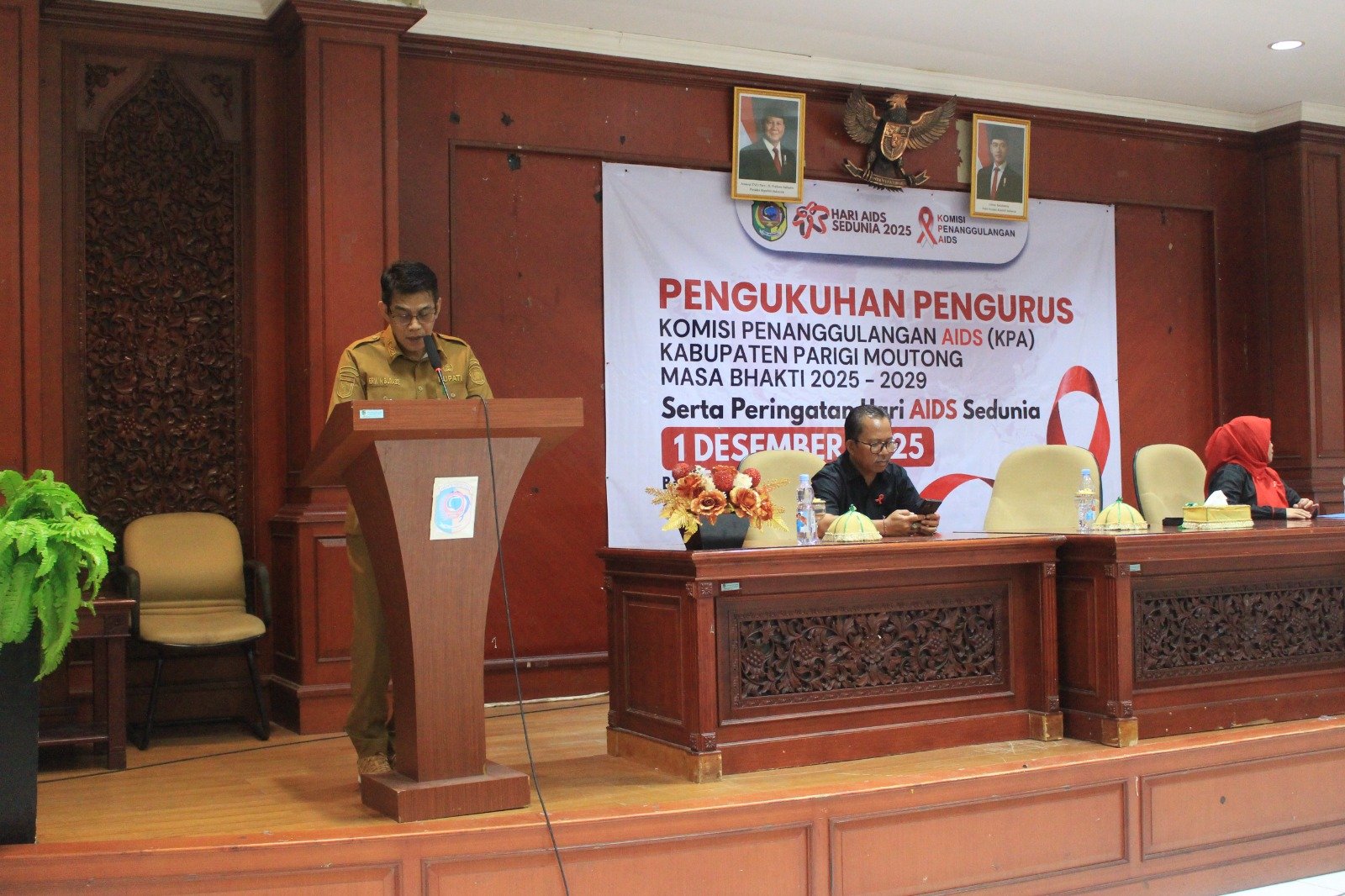 Soalparigi.ID — Pemerintah Kabupaten Parigi Moutong memperingati Hari AIDS Sedunia yang dirangkaikan dengan Pengukuhan Pengurus Komisi Penanggulangan AIDS (KPA) Kabupaten Parigi Moutong Periode 2025–2029. Kegiatan tersebut berlangsung di Aula Lantai II Kantor Bupati Parigi Moutong, Selasa (23/12/2025).