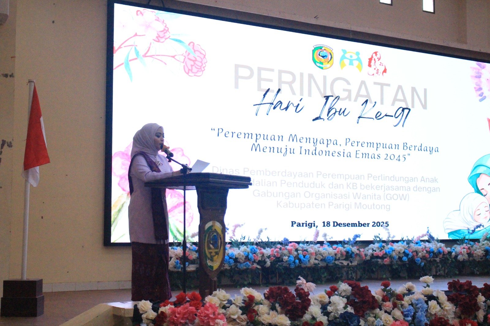 Pemerintah Kabupaten Parigi Moutong bersama Gabungan Organisasi Wanita (GOW) Kabupaten Parigi Moutong menggelar Peringatan Hari Ibu ke-97 di Auditorium Kantor Bupati Parigi Moutong, Kamis (18/12/2025).