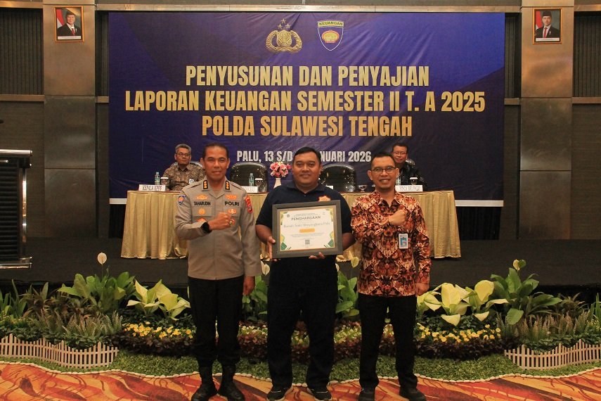 Prestasi tersebut disampaikan dalam kegiatan Penyusunan dan Penyajian Laporan Keuangan Semester II Tahun Anggaran 2025 yang digelar Polda Sulteng di Hotel Best Western Coco Palu, Selasa (13/1/2026).