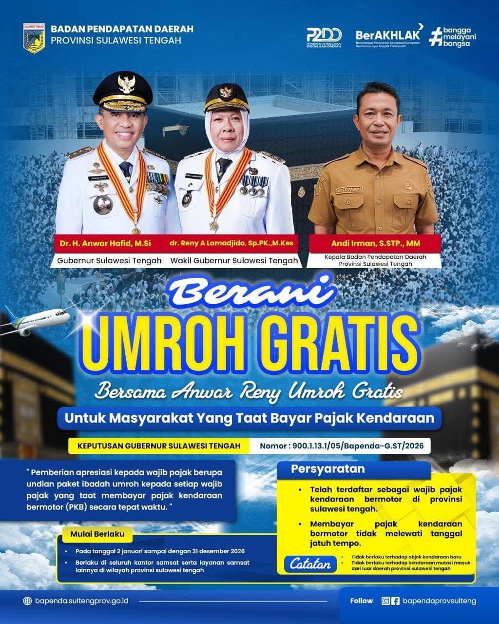 Bapenda Sulteng Luncurkan Program “Berani Umroh Gratis” untuk Wajib Pajak Kendaraan yang Taat Bayar PKB